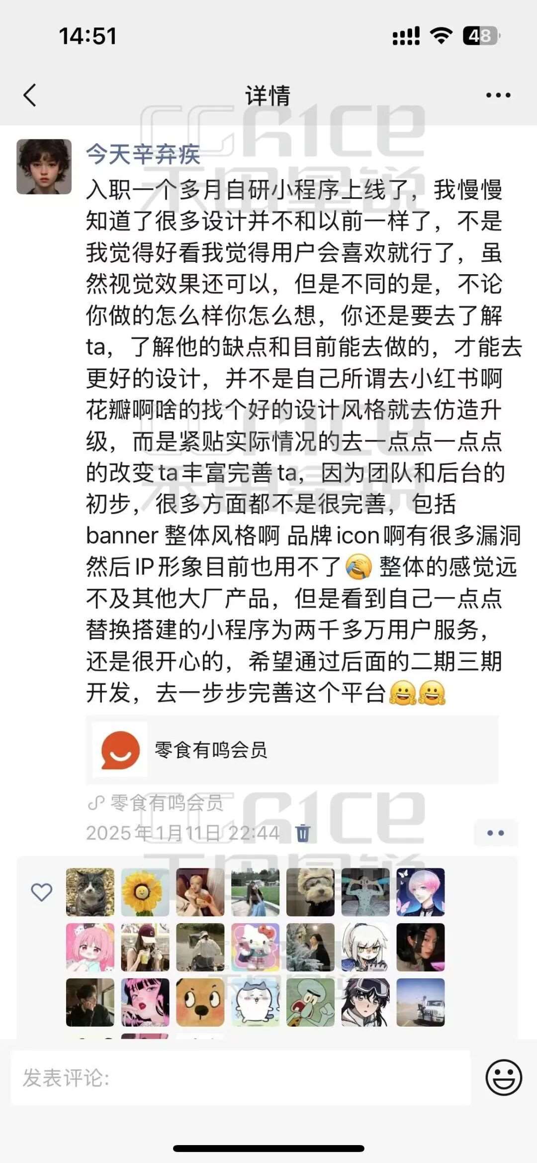 小涛坦言禾田的UI课程对他影响非常大,不仅激发了兴趣,更让他建立了系统的设计观和方法论。经过近一年的系统学习,他掌握了UI设计所需的一整套技能,从前期的软件操作基础,到后期的设计流程,这些课程内容与实际工作高度契合,使他在实习中得心应手。“我在公司负责整个会员小程序的搭建。刚进去时身边没有人手把手带我,但在禾田这边系统学习后,我有了自己的一套系统化能力,能够游刃有余地独立面对工作挑战。”正因为课程所学直接覆盖了岗位所需技能,他并没有因为缺少指导就感到手足无措,反而可以迅速上手任务。在他看来,禾田课程覆盖了当前UI行业的最新要求,比如很多UI设计岗位非常看重AE动画动效技能,来提升页面的丰富度和用户体验,这些他都提前在课程中学到了。顺利实现了从学生到职场新人的过渡。