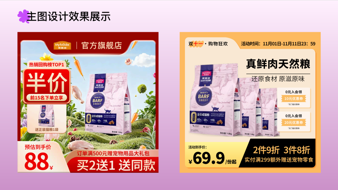 他在面试准备阶段重点梳理了自己在电商设计、IP 创作等场景的 AIGC 应用案例,尤其强化了 “技术如何解决商业痛点” 的逻辑梳理。小李同学并未单纯罗列自己掌握的 AIGC 工具,而是以 “宠物猫粮电商设计项目” 为核心,用清晰的逻辑链条呈现自己的工作思路。他从项目背景出发,依次讲解 AIGC 应用策略,通过 Midjourney 激发创意主视觉,用 Stable Diffusion 进行精准控制,LoRA 训练强化品牌风格统一性、执行过程、落地成果及复盘总结。